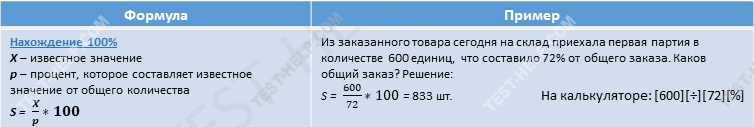При подготовке к числовым тестам удобно использовать таблицу основных формул. В ней собраны ключевые формулы с примерами применения - именно те, которые чаще всего встречаются в тестовых заданиях. Ниже приведён фрагмент таблицы.